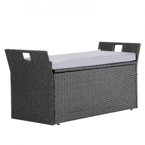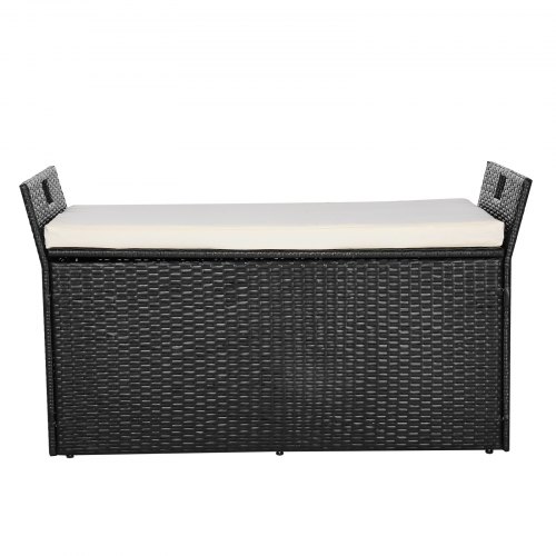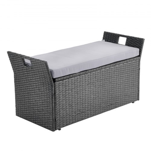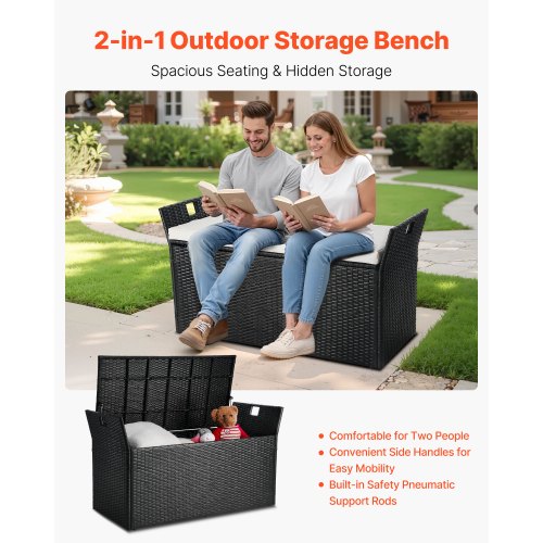 VEVOR Panca Portaoggetti da Esterno, Panca Portaoggetti in Rattan PE per 2 Persone, Contenitore con Cuscino Maniglia Laterale, Supporta max. 362 kg, Seduta da Giardino Decorazione per Balcone