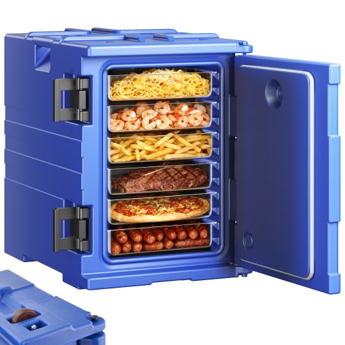 VEVOR Contenitore Riscaldato per Alimenti, Coibentato per Ristorazione 120 L con Doppie Fibbie e Maniglie, Contenitori per Alimenti, Contenitore per Alimenti Portabile Alimenti Mensa Ristorante Blu