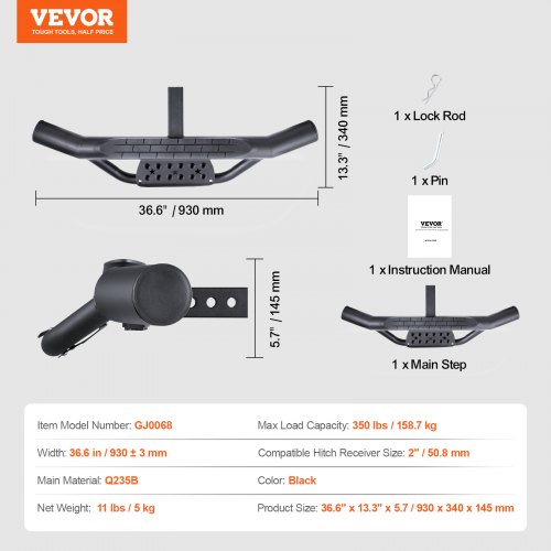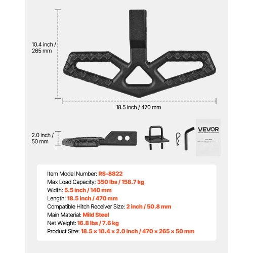 VEVOR Gradino di Aggancio per Ricevitore 50,8 mm, Capacità 158,7 kg Robusta Struttura in Acciaio, Protezione Paraurti Posteriore con Perno di Bloccaggio e Stabilizzatore per Camion, SUV, Pick-Up