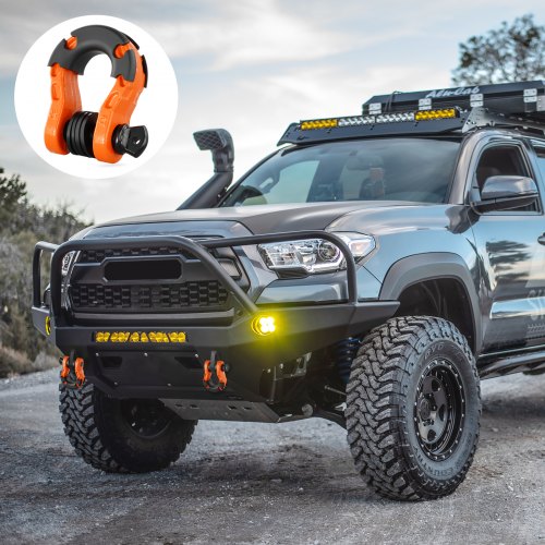 VEVOR Grillo Anello a D 19 mm, 2 Pezzi Grilli in Acciaio Legato 28,5 T Resistenza alla Rottura con Perno a Vite da 222 mm, Isolatori Rondelle, Grillo Recupero Veicoli Fuoristrada per Jeep, Arancione