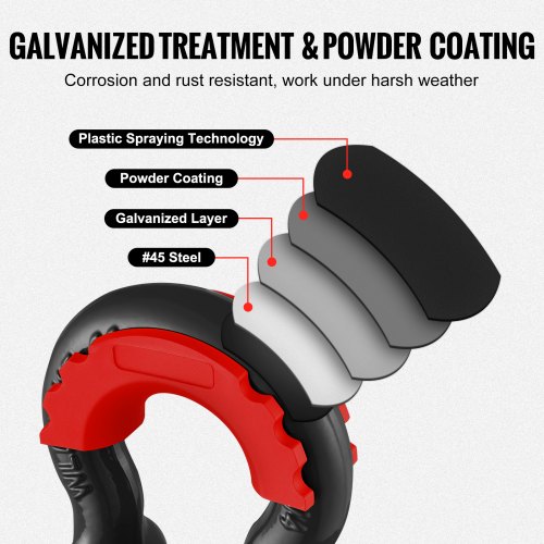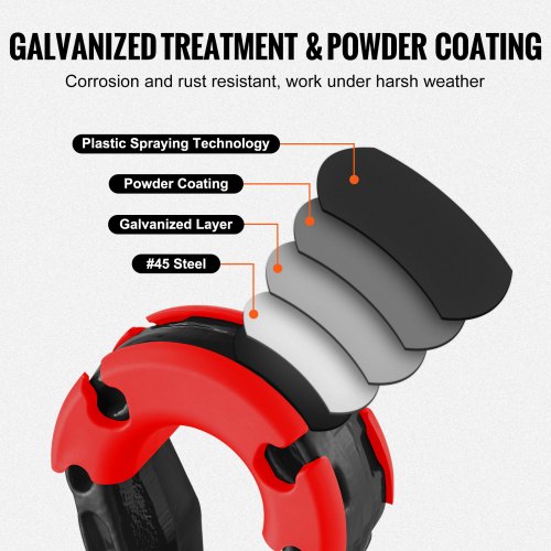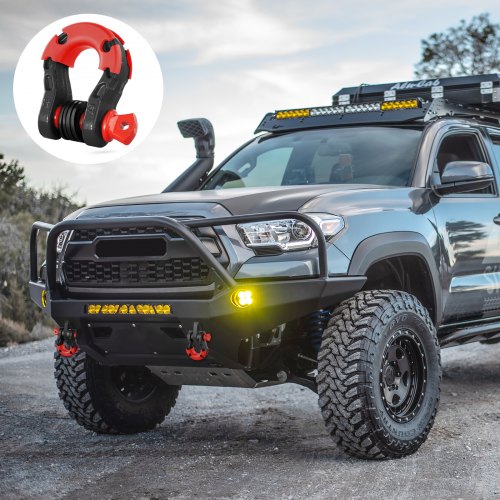 VEVOR Grillo Anello a D 19 mm, 2 Pezzi Grilli in Acciaio Legato 30T Resistenza alla Rottura con Perno a Vite da 22 mm, Isolatori Rondelle, Grillo per Recupero Veicoli Fuoristrada per Jeep, Rosso