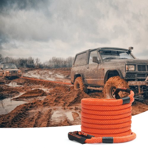 VEVOR Corda da Traino per Recupero Cinetico, Cinghia da Strappo Fuoristrada per Carichi Pesanti Fuoristrada, 25,4 mm x 9,1 m, 17237 kg, Cinghia per Strappi Resistente Jeep Auto Camion SUV, Nylon