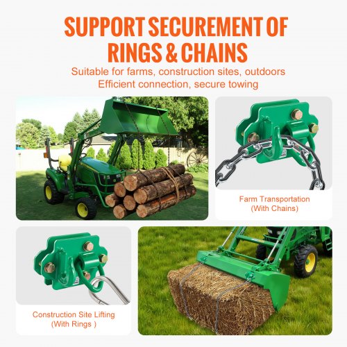 VEVOR Gancio per Pala da Trattore 7,93 mm con Anello di Ancoraggio, Gancio Avvitato per Carichi Pesanti con Piastra Posteriore, Acciaio Forgiato Grado 70, Resistenza Massima alla Rottura 5443,1 kg