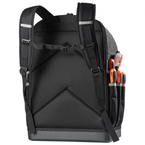 VEVOR Zaino Portautensili, 64 Tasche, per Attrezzi Pesanti, Zaino da Lavoro con Scomparto per Laptop e Base Sagomata, Borsa da Cantiere per Elettricisti, Riparatori e Tecnici HVAC Nero