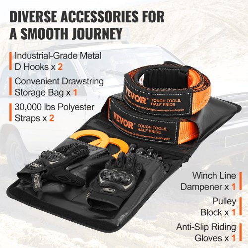 VEVOR Kit di recupero fuoristrada, 7,6x914,4 cm, cinghie di traino 13608 kg, 20 T, ricevitore grillo, puleggia con blocco di strappo, guanti, borsa di stoccaggio per camion Jeep ATV