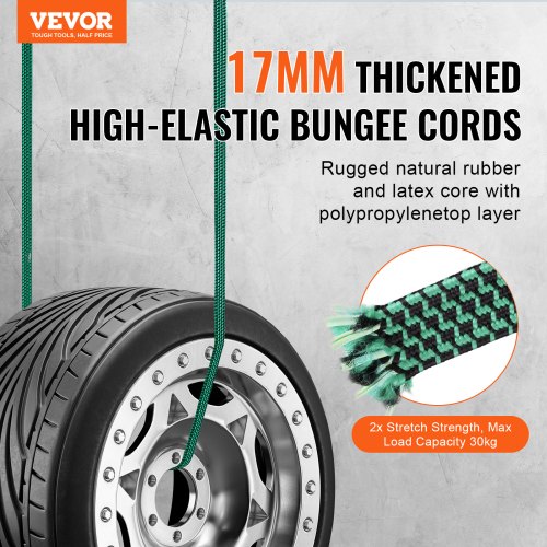 VEVOR Set di Corde Elastiche Piatte 32 Pezzi, Cinghie Elastiche Resistenti 17 mm con Ganci a J in Acciaio A3, Include Corde Elastiche da 0,5 m 0,9 m 1,2 m 1,6 m 2 m con Borsa Portaoggetti Portatile