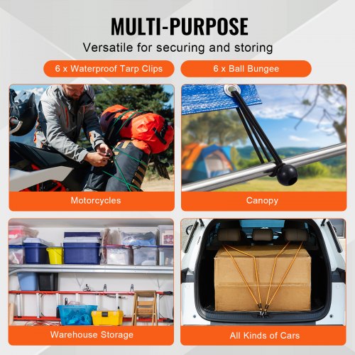 VEVOR 30 Pezzi Assortimento di Corde Elastiche, Cinghie Elastiche Resistenti 8 mm con Moschettoni Acciaio A3, Include 25/46/61/91/122/152/183 cm, Borsa Portaoggetti, 6 Clip e Fascette Baldacchino