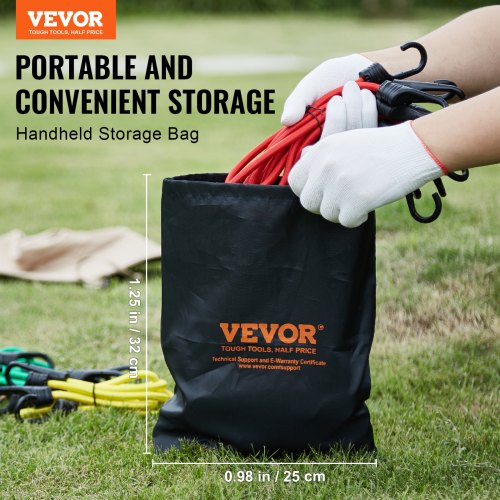 VEVOR 32 Pezzi Assortimento di Corde Elastiche, Cinghie Elastiche Resistenti 8 mm con Moschettoni Acciaio A3, Include 25/61/81/102/122 cm, con Borsa Portaoggetti, 4 Clip e Fascette Baldacchino