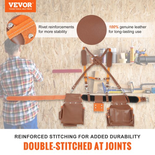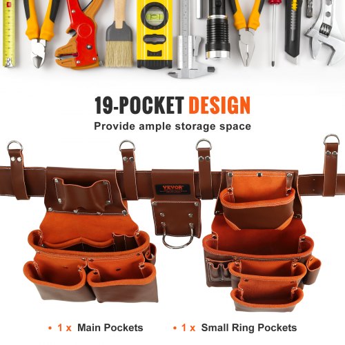 VEVOR Cintura porta attrezzi, 19 tasche, regolabile da 32 pollici a 54 pollici, Borsa porta attrezzi staccabile per elettricista, falegname, tuttofare, falegname, edilizia, corniciaio, Marrone