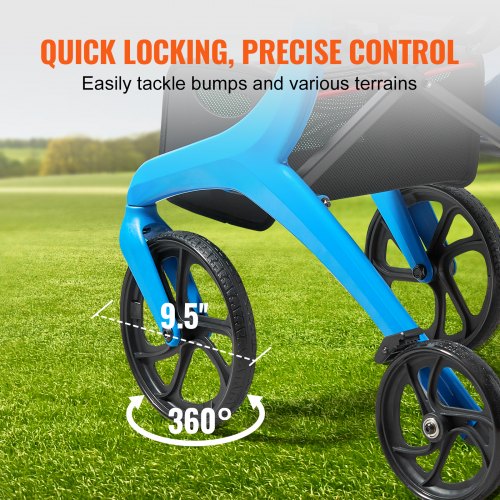 VEVOR Deambulatore a 3 Ruote per Anziani, Deambulatore Pieghevole in Alluminio Maniglia Regolabile, Deambulatore per Mobilità Ruote Grandi e Borsa, Capacità di 120 kg