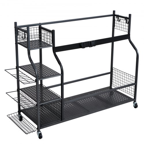 VEVOR Carrello Portaoggetti per Palline Sportive con Ruote, Gabbia da Basket con Chiusura a Chiave con Cinghie Elastiche, Organizzatore Porta Attrezzi Sportivi per Interni ed Esterni
