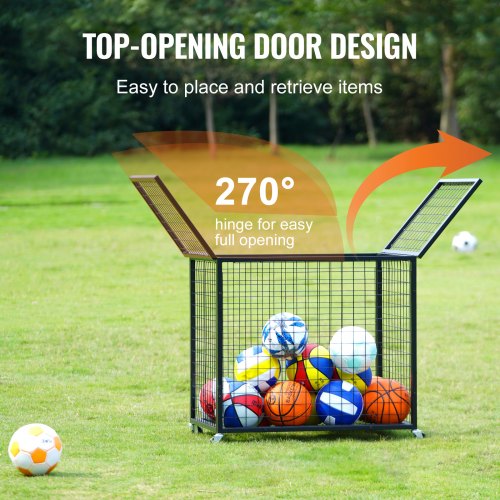 VEVOR Carrello Portaoggetti per Palline Sportive con Ruote, Gabbia Basket con Chiusura a Chiave con Doppi Coperchi, Organizzatore Porta Attrezzi Sportivi Interni ed Esterni, Rastrelliera in Acciaio
