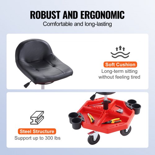 VEVOR Sgabello da Officina Mobile Portata max. 113,4kg, Sgabello da Meccanico con Rotelle Altezza Regolabile da Officina con Vassoio Porta Attrezzi, Sedia per Riparazione Auto Moto da Garage Officina
