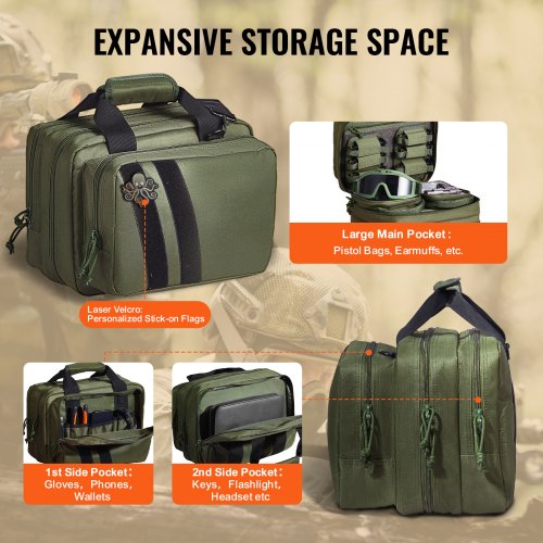 VEVOR Custodia Morbida per Pistola Capienza 4 Pistole, Custodia per Pistola con 3 Pannelli Rimovibili 6 Caricatori, Custodia per Armi da Fuoco, Borsa per Pistola Caccia all'Aperto, Tracolla Singola