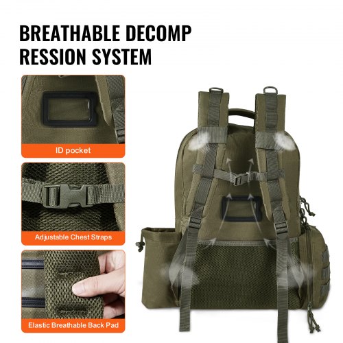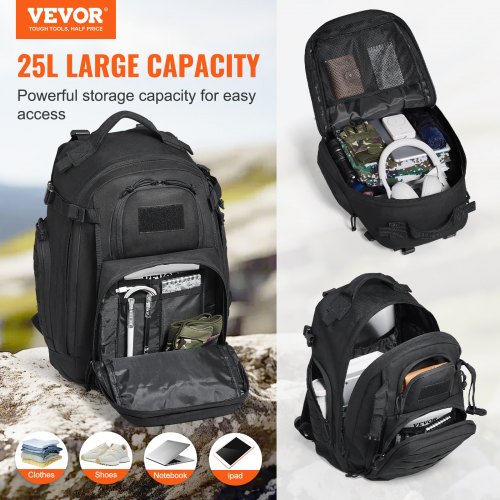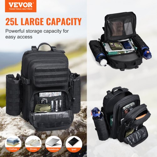 VEVOR Borsa da Viaggio Zaino 25 L con Design Molle Imbottitura in Spugna, Borsa Viaggio Zaino Borsa per Attrezzatura Zaino per Avventure all'Aria Aperta Escursionismo Caccia Nero
