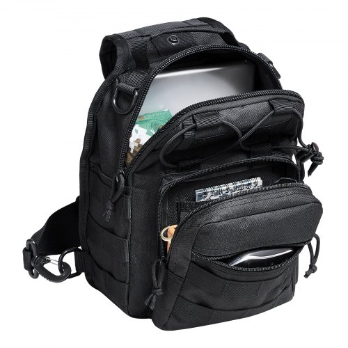 VEVOR Borsa da Viaggio Borsa a Tracolla 25 L con Design Molle e 3 Tasche, Borsa da Viaggio per Attrezzatura, Zaino Sportivi all'Aria Aperta Campeggio Abbigliamento Fitness Nero