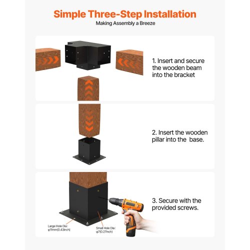 VEVOR Kit Staffe per Pergola 10x10 cm Supporto per Pali in Legno da Carpenteria 4 Staffe Angolari a 3 Vie 4 Basi per Travi Fai da Te per Gazebo, Pergolati da Patio, Cabine, Kit Staffe per Pergola 8 pz