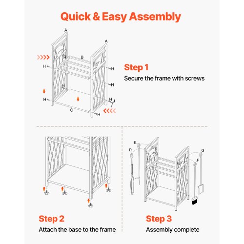 VEVOR Portalegna da Ardere per Interni, 330 x 320 x 1120 mm, Supporto per Impilare Tronchi, Supporta fino a 45,4 kg, Portalegna in Acciaio Verniciato a Polvere per Camino Peso 4,2 kg