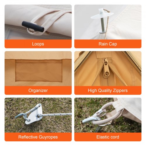 VEVOR Tenda Campana in Tela 6m Tenda Campeggio per Famiglie Feste Attività all'Aperto con Foro per Stufa a Legna e Borse di Stoccaggio Capienza ca. 10 Persone, BBQ Esterno, Gruppi all'Aperto, Caccia