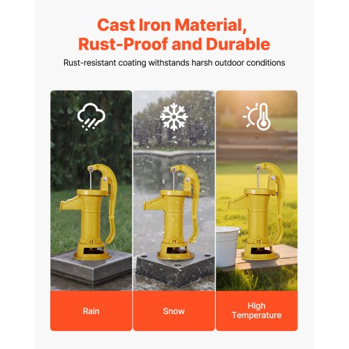 VEVOR Pompa Manuale per Pozzo, Sollevamento Massimo di 7,6 m, Pompa Manuale per Acqua in Ghisa Antica, Attacco NPT, Facile Installazione, Vecchio Stile per Giardino Esterno, Stagno, Giallo