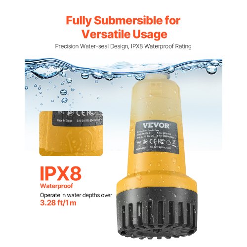 VEVOR Pompa ad Acqua Sommergibile 320 W Pompa Acque Scure Portata Elevata 6000 L/H Prevalenza da 7 m con Cavo di Alimentazione per Scaricare l'Acqua dalla Piscina Stagno da Giardino Seminterrato
