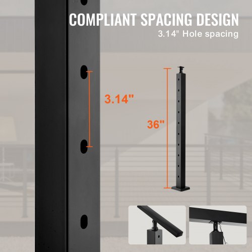 VEVOR Palo per Ringhiera per Scale, Palo per Parapetto Fori Inclinati a 30 gradi, 10 Fori Preforati, Palo Ringhiera Acciaio Inox 91,4x5x5 cm, Nero, 1JZLGZ91455HV8GHUV0