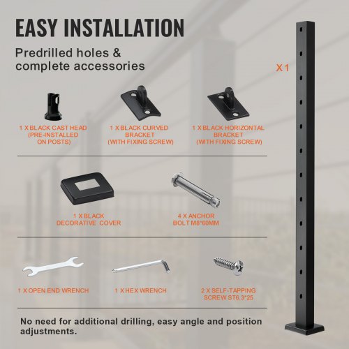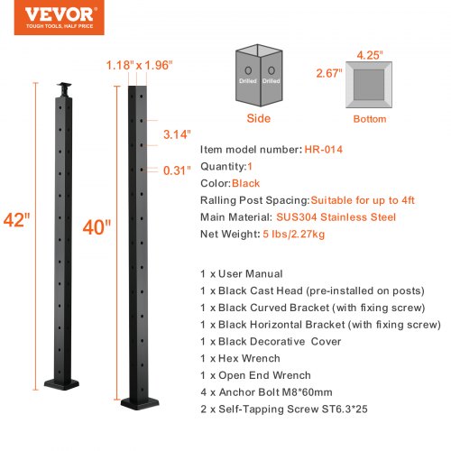 VEVOR Set di Ringhiera 4 Pz per Recinzione da Balcone 1067x108x68 mm da Giardino Balcone Ponte in Acciaio Inox, Kit di Palo per Balaustrata da Terrazza, Nero, 4JZLGZXHS106REP67001V0