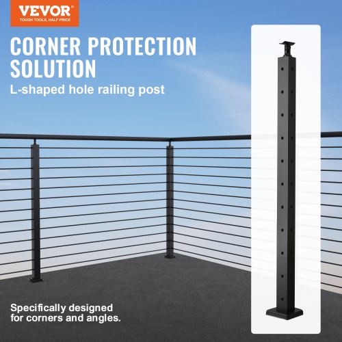 VEVOR Palo per Ringhiera per Cavi, Palo per Ringhiera Angolare in Acciaio a Forma di L con Foro a L, 12 Fori Preforati, Acciaio Inox 106,7x2,5x5 cm, Nero, 1JZLGZHS1067CSWRBV0