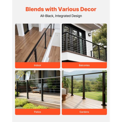 VEVOR Set di Ringhiera 4 Pz per Recinzione da Balcone 914x108x68 mm Giardino Balcone Ponte in Acciaio Inox, Kit di Palo per Balaustrata da Terrazza, Nero, 4JZLGZXHS914UUOI6001V0
