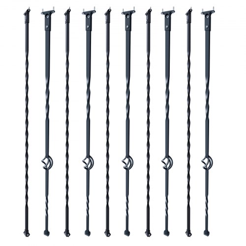 VEVOR Balaustre per Scale in Metallo, 112x1,27 cm, Confezione da 10 Balaustre per Ponte con Torce Vuote, Ringhiera per Scale a Spirale Nera Satinata con Scarpe e Viti