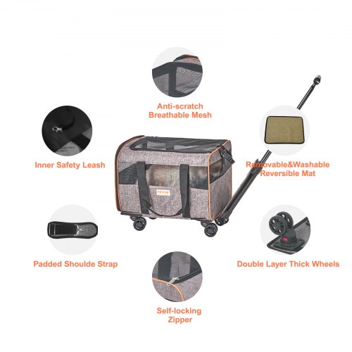 VEVOR Seggiolino Auto per Cani di Piccola Taglia Media 25kg, Rialzo per Cani Impermeabile, Tasca Portaoggetti, Guinzaglio di Sicurezza con Clip, Imbottitura in Spugna, Cuccia per Cani, Grigio