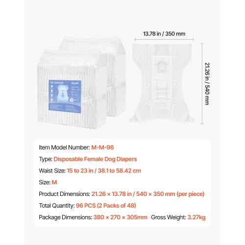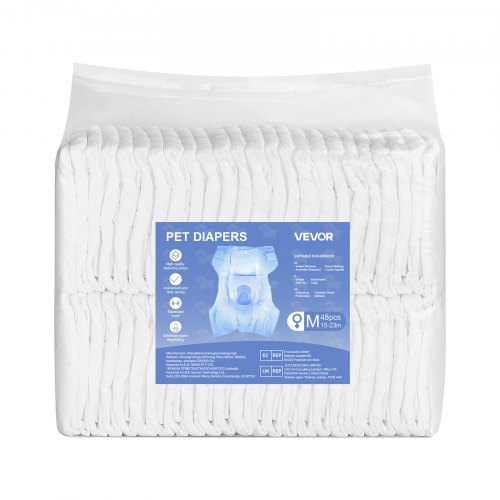 VEVOR Pannolini Monouso per Cani, Super Assorbenti per Cani Femmine, Pannolini a Prova di Perdite a 360° con Indicatore di Umidità per Addestramento, Taglia M, 96 Pezzi, 2 Confezioni da 48