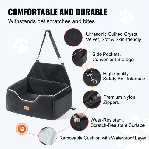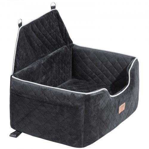 VEVOR Seggiolino Auto per Cani Piccola Media Taglia 18kg, Rialzo per Cani, Tasca Portaoggetti, Guinzaglio di Sicurezza con Clip, Imbottitura in Spugna di Cotone PP, Cuccia per Animali Domestici, Nero