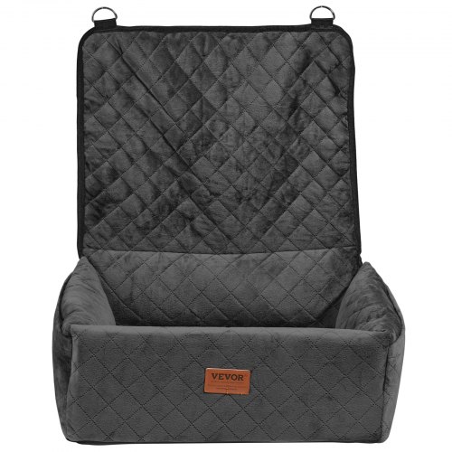 VEVOR Seggiolino Auto per Cani di Piccola Taglia 9 kg, Rialzo per Cani con Schienale Alto, Tasca Portaoggetti, Guinzaglio di Sicurezza con Clip, Imbottitura in Cotone PP, Cuccia Cane, Grigio Scuro