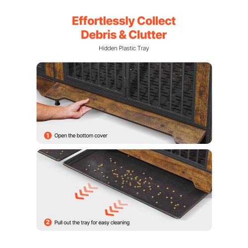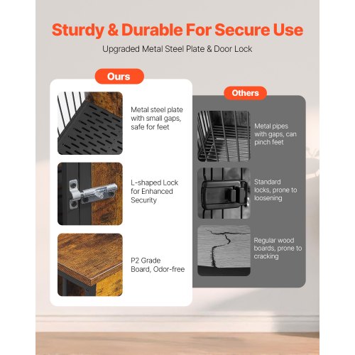 VEVOR Gabbia per Cani 104 x 59 x 91cm Moderna Gabbia per Cane in Legno Tavolino Portaoggetti Uso Interno Doppia Porta Vassoio Facile Montaggio per Cani Capacità Max.136kg, Gabbia Cani Marrone Rustico