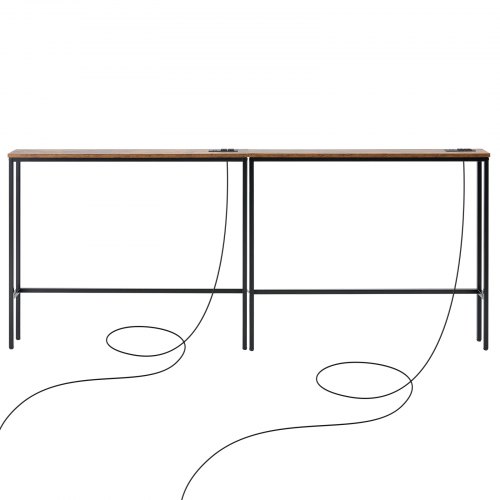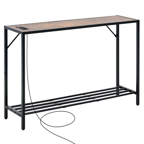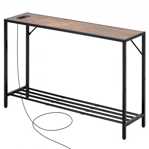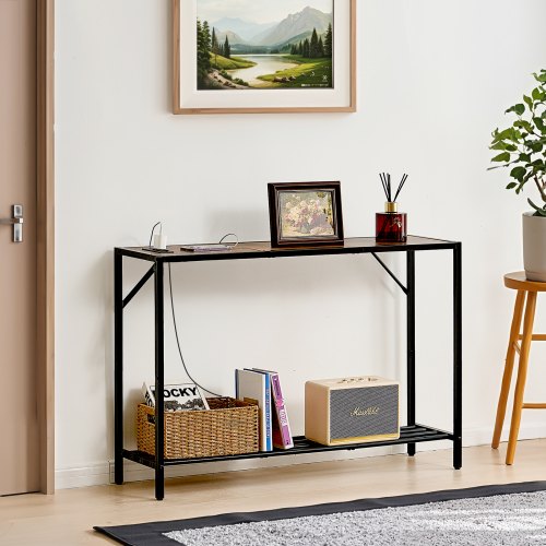 VEVOR Tavolino da Divano Stretto Dietro, 2 Pezzi con Prese di Corrente, Tavolo d'Ingresso Lungo a 1 Piano con Struttura in Metallo e Stazione di Ricarica, per Ingresso, Corridoio, Soggiorno