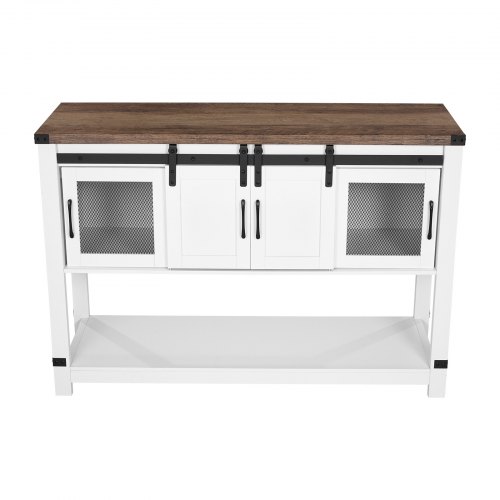 VEVOR Mobile Bar da Caffè 80 x 33 x 80 cm Mobiletto da Bar Rustico, 3 Ripiani, Tavolo da Bar con Porta del Fienile, Mobile Bar in Stile Fattoria, Mobile da Buffet con Credenza Rustica, Marrone/Bianco