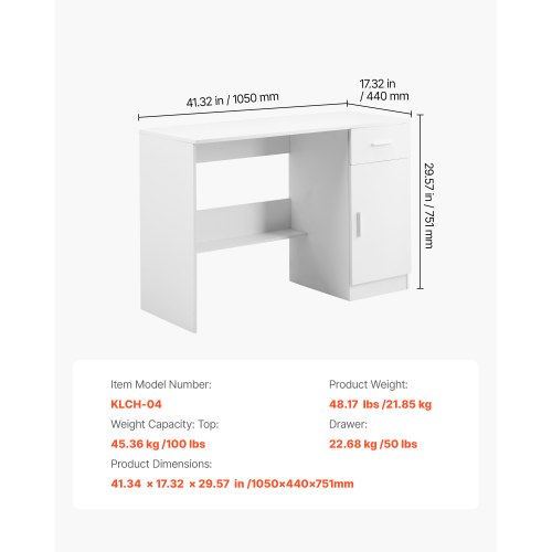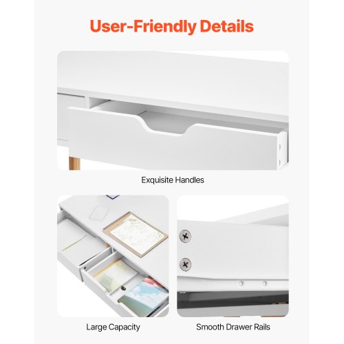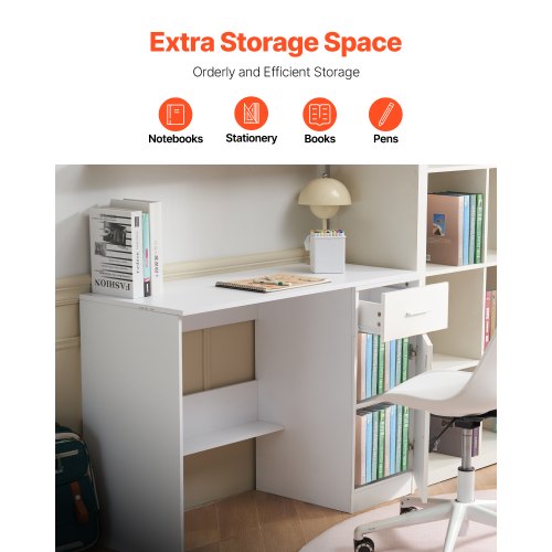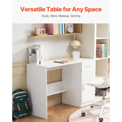 VEVOR Scrivania Piccola con Cassetto, Scrivania per Camera da Letto, Semplice Tavolo da Studio in Legno per Disegnare, Leggere, Tavolo da Lavoro Rettangolare con Ripiano Regolabile per Ufficio, Bianco