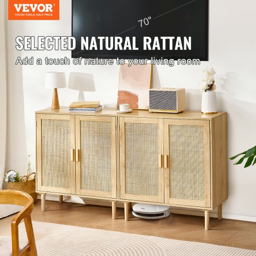 VEVOR Mobile in Rattan 1200 x 360 x 800 mm Cassettiera in Rattan con 3 Ante Magnetiche e Ripiani Regolabili, Mobile Portaoggetti, Credenza Buffet per Corridoio, Ingresso, Soggiorno, Cucina, Corridoio