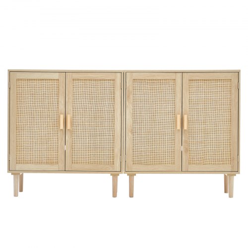VEVOR Set di 2 Armadietti in Rattan, Armadio Portaoggetti in Rattan con 4 Ante Magnetiche e Ripiani Regolabili, Credenza Portaoggetti per Corridoio, Ingresso, Soggiorno o Cucina, Mobiletto da Casa