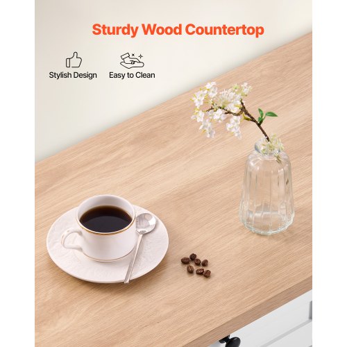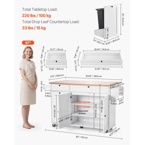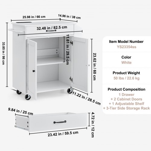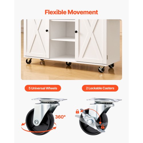 VEVOR Carrello da Cucina, Tavolo da Colazione in Legno da 46" con Mobiletto Portaoggetti, Tavolo da Cucina Stile Fattoria con Ripiano Regolabile, Cassetto, per Sala da Pranzo, Soggiorno, Bianco
