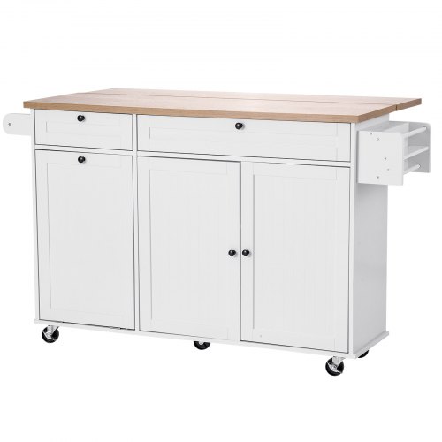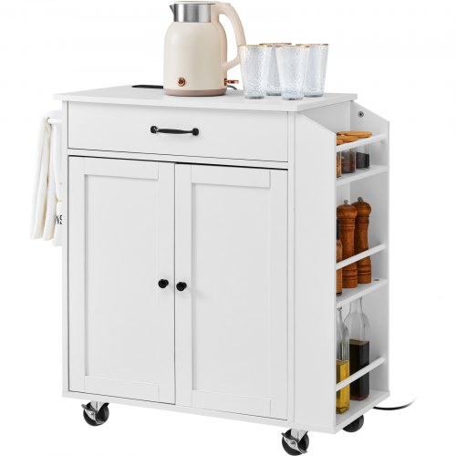 VEVOR Carrello da Cucina, Carrelli Mobili, Piano Ribaltabile Legno 810 mm con Mobiletto Portaoggetti, con Rotelle, Porta Spezie e Asciugamani, Cassetto Ganci, Isole Portatili Presa Corrente, Bianco