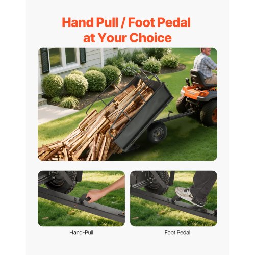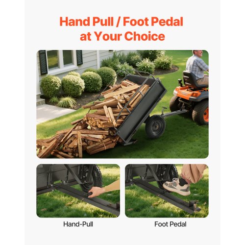 VEVOR Rimorchio da Giardino, Capacità di 272,16 kg Carrello Ribaltabile in Acciaio con Pneumatici da 40,64 cm Azionamento a Mano o a Pedale, per Impieghi Gravosi per Trattorini Tosaerba