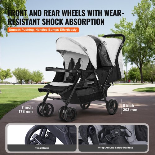 VEVOR Passeggino Wagon per 2 Bambini, Passeggino Pieghevole con Maniglia Regolabile, Tettuccio Rimovibile, Lmbracatura Circolare, 4 Ruote Freni Passeggino Portatile Multifunzione Campeggio, Grigio