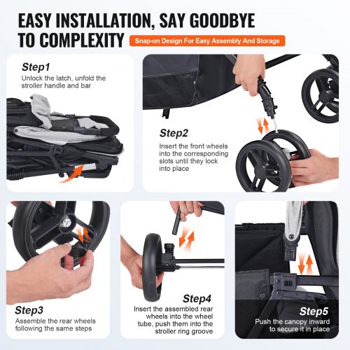 VEVOR Passeggino per Neonati, Passeggino per Bambini con Schienale Regolabile 95°-175° Poggiapiedi Regolabile 0/90°, Passeggino Neonato con Portabicchieri Borsa per il Trasporto, Grigio Chiaro