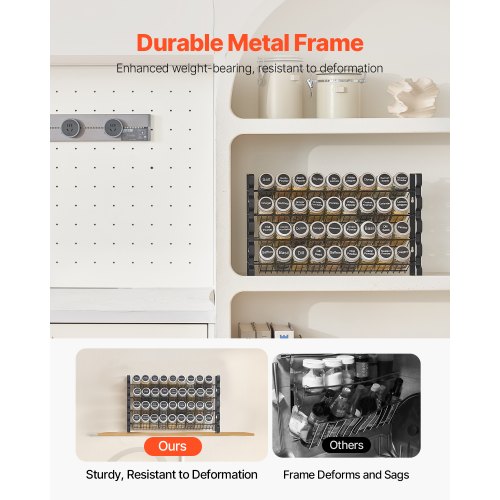 VEVOR Organizzatore per Spezie per Armadietto con 36 Barattoli per Spezie Vuoti, Coperchi, Etichette per Spezie e Imbuto, Set Completo, Organizzatore per Condimenti, 463x118x282 mm