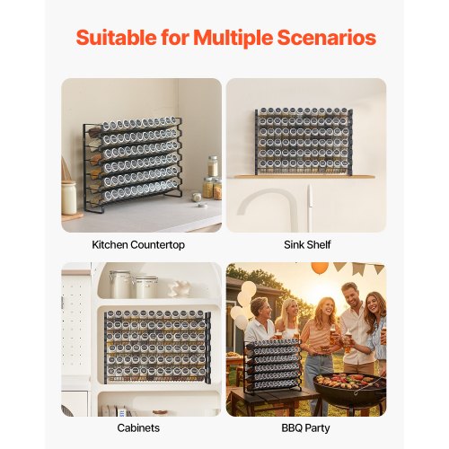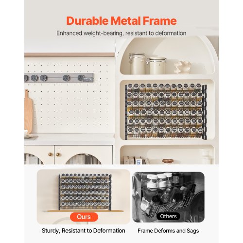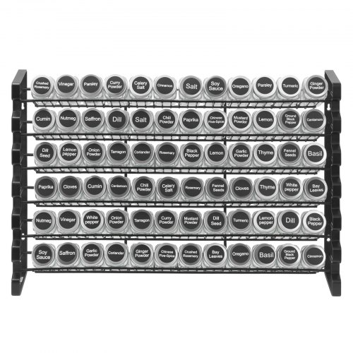 VEVOR Organizzatore per Spezie per Armadietto con 72 Barattoli per Spezie Vuoti, Coperchi, Etichette per Spezie e Imbuto, Set Completo, Organizzatore per Condimenti 591x118x407 mm