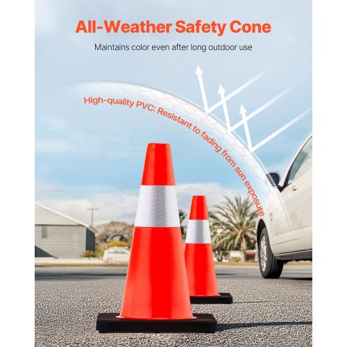 VEVOR Coni per la Sicurezza del Traffico 6 Coni per Parcheggio in PVC da 91,4 cm con 2 Collari Riflettenti 35,6 x 35,6 cm Base in Gomma Nera per Strade di Avvertimento più Elevate Cantieri