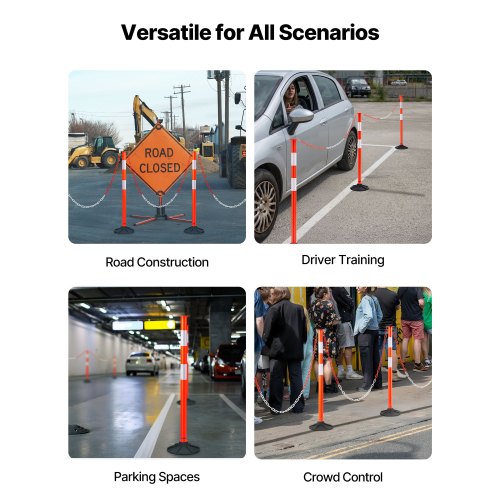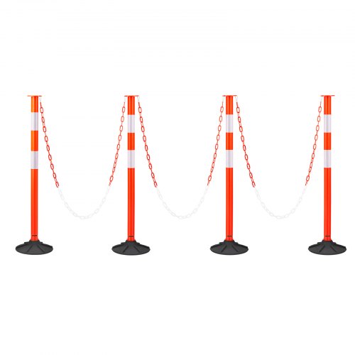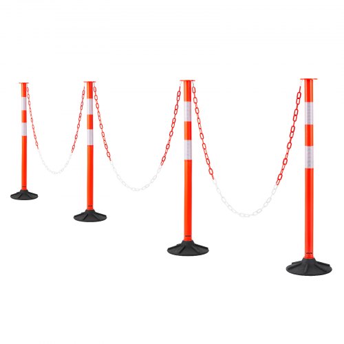 VEVOR Pali Delimitatori di Traffico, 4 Pezzi, Paletti di Sicurezza Stradale da 871 mm con Base Appesantita e Strisce Riflettenti e Catena, Pali Delimitatori per Cantieri Edili, Parcheggi, Rosso