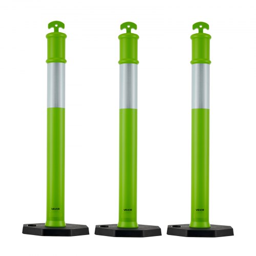 VEVOR Set di Paletto Delimitatore del Traffico φ375 x 1140 mm con Base Riempibile Strisce Riflettenti, Paletti Stradali di Segnalazione per Controllo della Folla, 3 pezzi, Verde